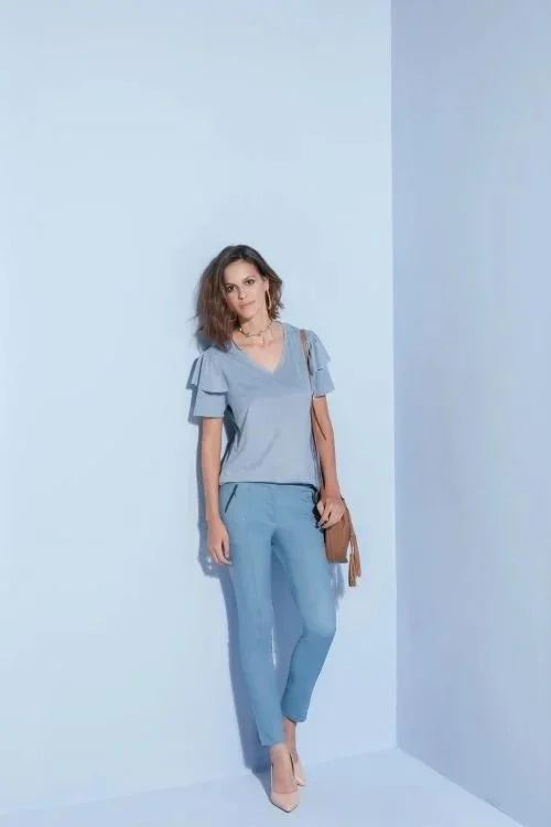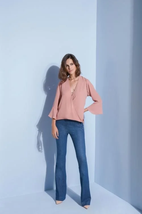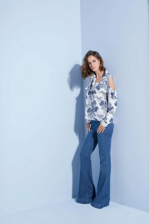 An example of a repeatable style silhouette: soft blouse + classic denim.